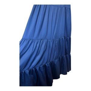 Navy blue maxi dress with a square neckline, wide straps, tiered silhouette, and hidden side pockets. Soft, lightweight fabric. New with tags.