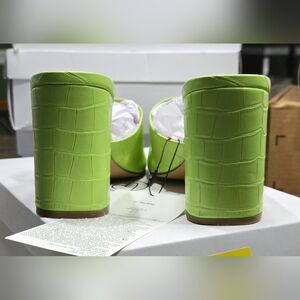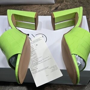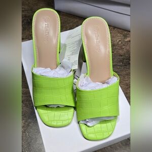 Elevate your look with these chic lime green croc-embossed mules. Perfect for adding a bold touch to any ensemble.