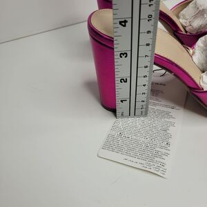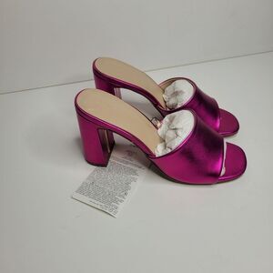The Drop Pattie High Block Heeled Mule Sandal Hot Pink Metallic Size 6.5 Retro