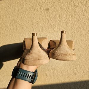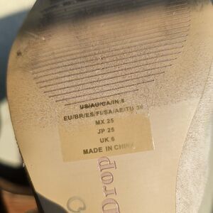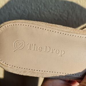 The Drop Paulina Pointed Toe Two-Tone Mule in size 8 features a stylish design with a colorblock pattern in beige and black. This slip-on heel has a low kitten heel, making it comfortable for all-day wear. Perfect for various occasions like parties, formal events, christenings, and business meetings, these stylish mules are sure to add a touch of elegance to any outfit. Made from faux suede, these heels are a fashionable choice for women looking to make a statement. Pre-owned.