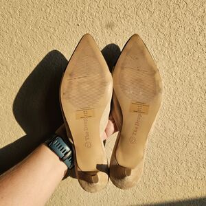 The Drop Paulina Pointed Toe Two-Tone Mule Size 8 Beige Black Kitten Heels