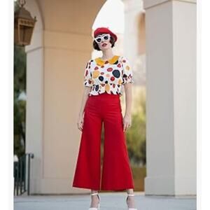 frolicsome creation from Unique Vintage, the Rochelle Pants are a fabulous piece in chic black! Crafted in a lightweight and smooth crepe fabric, the dramatic wide legs have fabulous pleating that leads to a wide banded high waist and adjustable suspenders. Outfitted with two hidden side pockets and a back zipper to cinch you in, it’s your jumping off point!