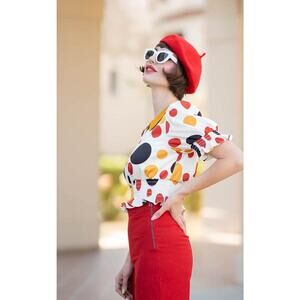The Drop Satin Mod 60s Drop Polka Dot Peter Collar Sz L #78