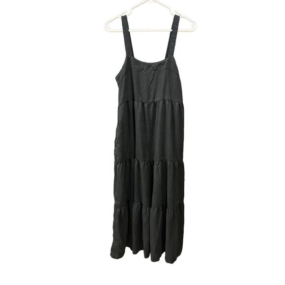 The Drop Black Tiered Dress with adjustable straps (3 button levels).