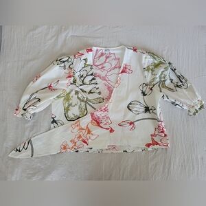 The Drop White Floral Print Knot-Front Cropped Top by @signedblake | L