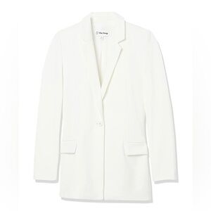New, never worn. The Drop women’s Blake long blazer in white. Spare button attached inside near care instruction tag. Size M