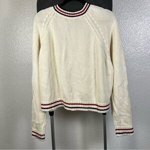 The Drop Women’s Cream V-Neck Sweater with Striped Trim Size XL