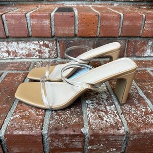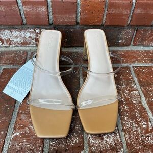The Drop Women's Size 12 Avery Clear Tan Heeled Sandal Shoes