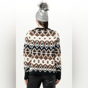 Elevate your style with this elegant patterned sweater. Featuring a sophisticated blend of black, brown, and cream, it's perfect for any occasion. NWT