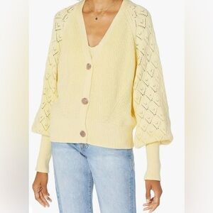 The Drop Women's Divya Pointelle Full Sleeve Cardigan Sweater Yellow size XL
