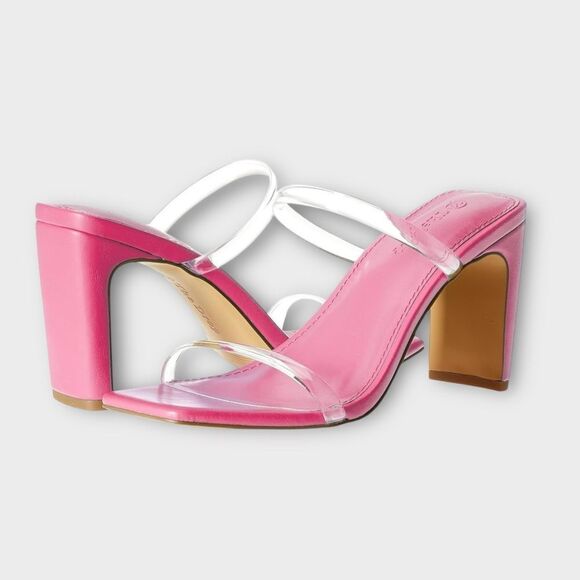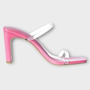 The Drop Women's Pink/Clear Avery Square Toe Two Strap High Heeled Slide Size 9