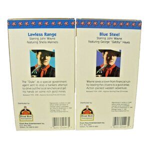 Step back into the wild, untamed West with this captivating VHS collection featuring John Wayne. Relive the rugged adventures of "The Duke" through four timeless classics, each one a testament to his legendary prowess. From lawmen to outlaws, this set captures the essence of Wayne's enduring legacy in cinematic history.