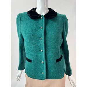 The Eagles Eye 80s Womens Wool Jacket With Velvet Collar Green Size 12 Vintage C