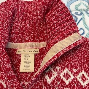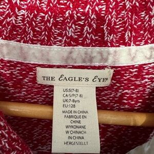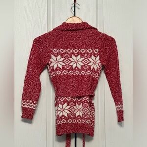 The Eagle's Eye Girls Fair Isle Sweater Cardigan w/ Waist Tie Size 7-8 Red Cream