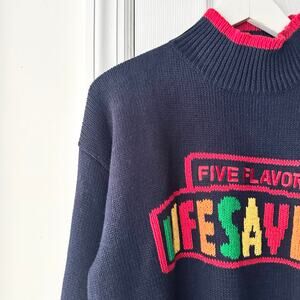 The Eagle’s Eye Navy Blue Five Flavors Lifesavers Logo Brand Handknit Sweater M
