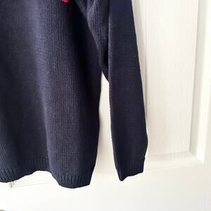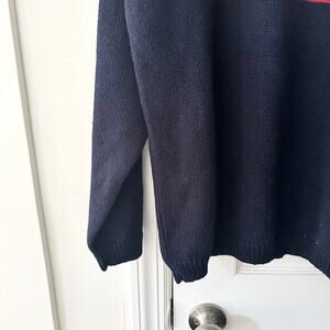 Size medium from the Eagles eye. Navy blue mock neck lifesavers branded Handknit sweater. Ramie cotton blend. Vintage. Preowned in good condition with no stains or tears.