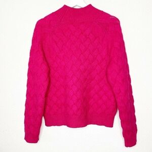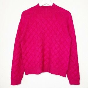 Beautiful sweater by The East Order.Knit basket weave type pattern in a fuchsia pink.Funnel neck similar to a mock turtleneck.So pretty and classy!All measurements are approximate and taken flat.