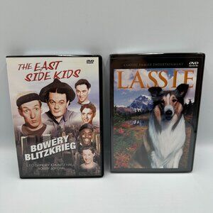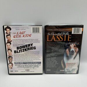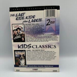 This 2-DVD set includes "The East Side Kids: Bowery Blitzkrieg" and "Lassie: The Painted Hills," offering entertaining family classics. Packed with engaging stories and timeless performances, it also features digitally mastered visuals with interactive menus and trivia extras. Excellent for collectors of vintage cinema.