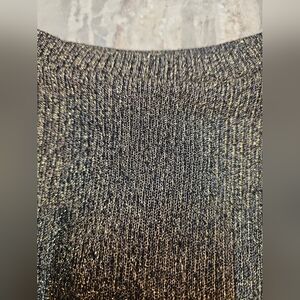 Add a glam edge to your wardrobe with this metallic knit crop top from The Edit by Seventeen. Featuring a subtle gold shimmer throughout and a bold lace-up ribbon back detail, this long sleeve top is perfect for nights out or layered looks. Soft stretch material makes it both stylish and comfortable. Size Medium, in great condition!