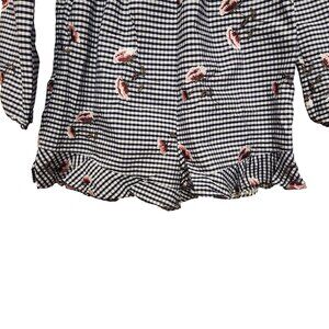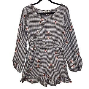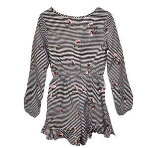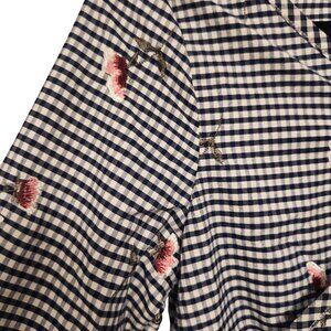 The Edit by Seventeen Navy White Gingham Floral Embroidered Romper Size Medium