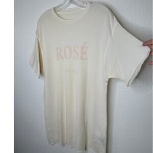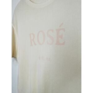 The Elder Statesman Cream with Pink Rose Graphic Machine Cut Short Sleeve