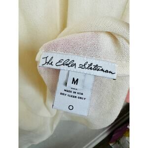 The Elder Statesman Cream with Pink Rose Graphic Cashmere Silk Blend Sweater M