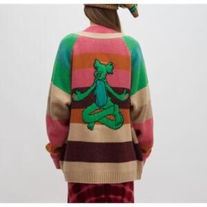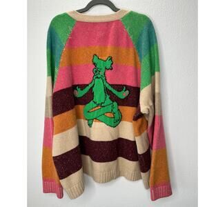 The Elder Statesman Enlightened Bear Striped Cashmere Cardigan L