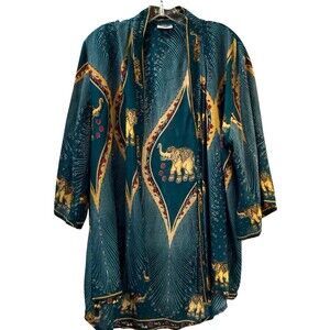 The Elephant Pants Kimono Womens OS One Size Elephant Print Cardigan Thailand.