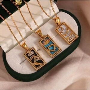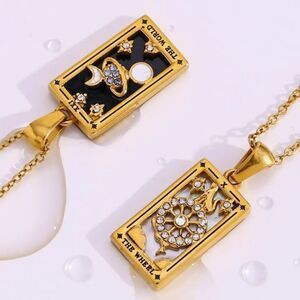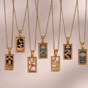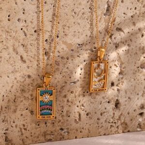 The Empress Tarot Card Pendant Necklace 18K Gold Enamel Rectangle Stainless…