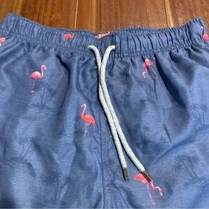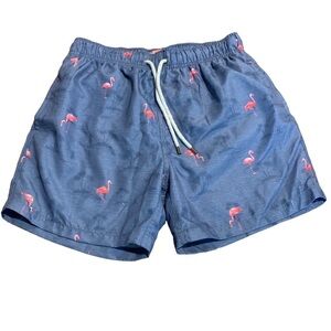The Endless Summer Flamingo Swim Trunks Size Small. Elastic and drawstring waist. Pockets. Inside netting. Approximate measurements rise. 12 inches inseam 4 inches. Great preowned condition.