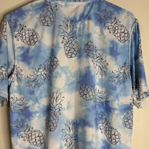 The Endless Summer Polo Shirt Mens Large Blue White Pineapple Print Stretch