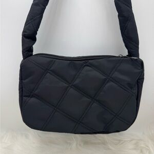 Preppy Style Casual Quilted Zippered Nylon Black Handbag