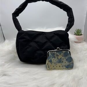 The Errands Grab & Go Quilted Nylon Handbag w/ Star Print Blue Jean Coin Purse