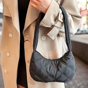 Preppy Style Casual Quilted Zippered Nylon Black Handbag