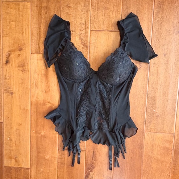 The Escanté Collection Vintage Black Lace Garter Bustier Lingerie Top Size M