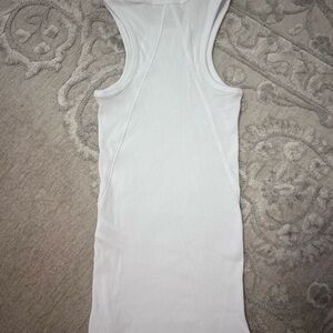 Elevate your wardrobe with this classic white ribbed tank top. Perfect for layering or wearing on its own, this versatile piece is a must-have.