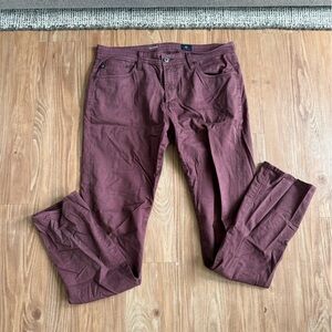 The Everett slim straight pants in a rich maroon shade. Ideal for versatile styling.