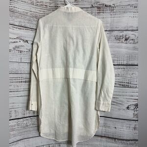 The Executive Top Womens Sz M Gauze Linen blend Ivory Minimalist Mandarin collar