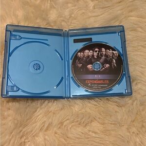 The Expendables Blu-ray in a blue case. Action-packed film with a star-studded cast.