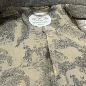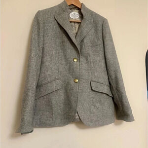 Elevated and timeless — this gorgeous Extreme Collection blazer blends Spanish craftsmanship with a refined British-inspired silhouette. Made in Spain from a textured gray cotton knit and lined in a heritage print fabric, it features structured shoulders, a tailored fit, and striking gold-embossed buttons that give it that signature equestrian-preppy polish.