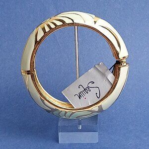 * Enamel Hinge Cuff Bangle Clamper Bracelet Gold Tone - Chunky - Rhinestone