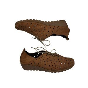 The FLEXX Suede Run Crazy Brown Perforated Wedge Comfort Shoes Women's Size 6.5. Soft suede, lace-up, comfort, In great, gently used condition.