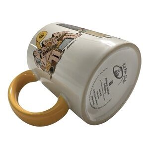 This is from Gary Larson's The Far Side famous comic strip. Featuring cavemen, the caption says: "Well, I suppose it'll be a few thousand years before we get an 'Arts and Leisure' section". Distributed in 1998 by Andrews McMeel Publishing, this coffee mug is new condition. Coffee Mug is Yellow on inside and on handle. These mugs are no longer produced and are hard to find in good condition.