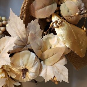 The Farmhouse Rachel Ashwell NWT Ivory Pumpkins, Mums Fall Leaves Lighted Wreath