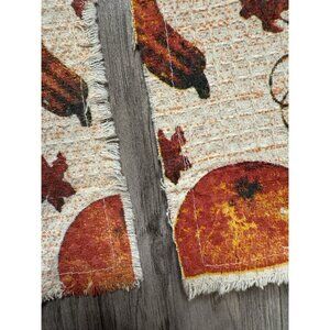 The Farmhouse Rachel Ashwell Pumpkin 6 Napkins/Dish Cloths are a charming addition to your home during the fall season. Made of cloth and cotton, these multicolor napkins feature a pumpkin pattern, perfect for adding a touch of farmhouse style to your kitchen or dining area. With a machine washable design, these 10-15 inch wide napkins are both practical and stylish, making them ideal for autumn gatherings or everyday use. Please view all photos as they are part of description included are approximate measurements and condition . Multiple purpose