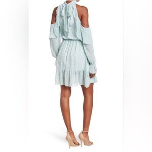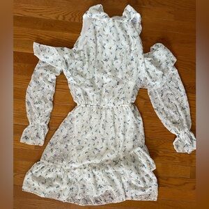 The Fashion Poet Clip Dot Cold Shoulder Ruffle Long Sleeve Dress white size 8