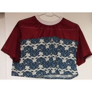 ➳ urban outfitters↟the fates ➳ size small ➳ never worn cute cropped t-shirt, perfect for the summer! mixed woven fabric with mesh top. ➸ let me know if you're interested in haggling or bundling!
