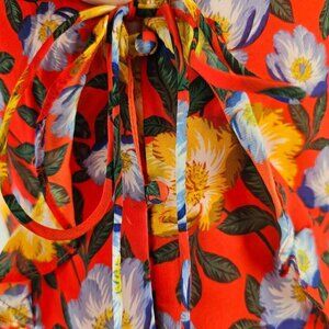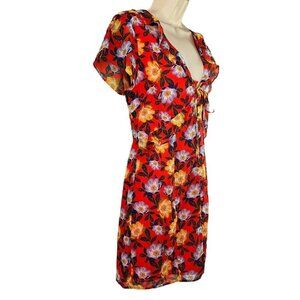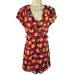 The Fifth Label Button Front Ruffle Shift Dress Red Foral Cap Sleeve Women M NEW