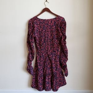 Chic mini dress with floral pattern. Features long sleeves and a V-neckline. Perfect for any occasion.