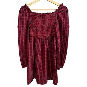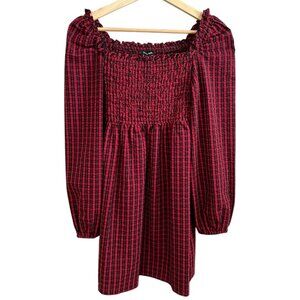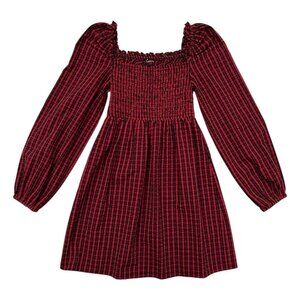 The Fifth Label Plaid Seersucker Mini Dress Red XS Puff Sleeve Cottagecore Punk